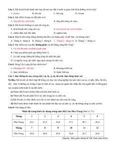 Thí sinh trả lời từ câu 1 đến câu 10. Mỗi câu hỏi thí sinh chỉ chọn một phương án.