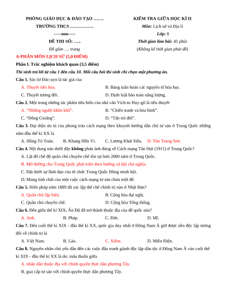 A-PHÂN MÔN LỊCH SỬ (5,0 ĐIỂM)