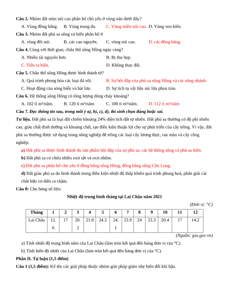 B-PHÂN MÔN ĐỊA LÍ (5,0 ĐIỂM)