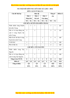 MA TRẬN ĐỀ KIỂM TRA GIỮA HỌC KÌ 2 (2023 - 2024)