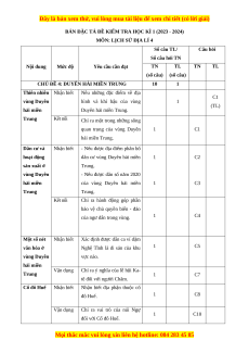MÔN: LỊCH SỬ ĐỊA LÍ 4 Số câu TL/ Câu hỏi Số câu hỏi TN Nội dung Mức độ Yêu cầu cần đạt TN TL TN TL (số câu) (số câu)