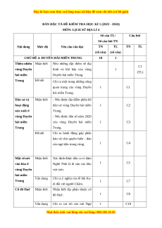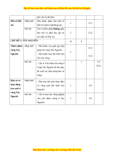 Dân cư và hoạt động sản 1 1 2 0 1,0 xuất ở vùng Tây Nguyên Tổng số câu TN/TL 8 1 4 1 2 0 14 2 10,0 Điểm số 4,0 2,0 2,0 1,0 1,0 0 7,0 3,0 10,0 Tổng số điểm 6,0 3,0 1,0 10,0 10,0 60% 30% 10% 100% 100%
