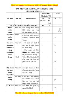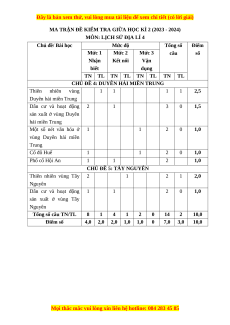CHỦ ĐỀ 4: DUYÊN HẢI MIỀN TRUNG Thiên nhiên vùng 1 1 1 1 2,5 Duyên hải miền Trung Dân cư và hoạt động 2 1 3 0 1,5 sản xuất ở vùng Duyên hải miền Trung Một số nét văn hóa ở 1 1 2 0 1,0 vùng Duyên hải miền Trung Cố đô Huế 1 1 2 0 1,0 Phố cổ Hội An 1 1 2 1,0