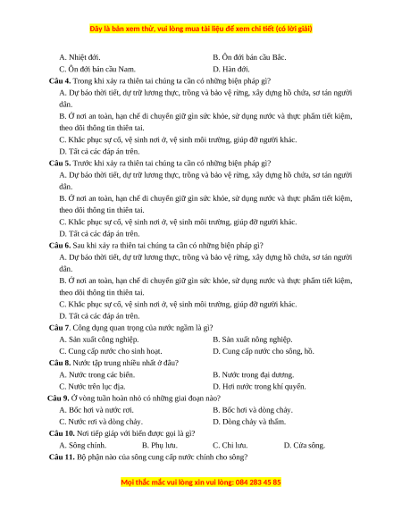 Câu 5. Trước khi xảy ra thiên tai chúng ta cần có những biện pháp gì?