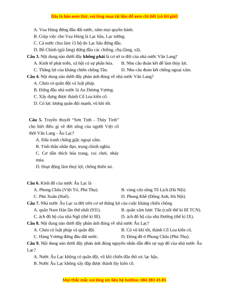 Câu 7. Nhà nước Âu Lạc ra đời trên cơ sở thắng lợi của cuộc kháng chiến chống