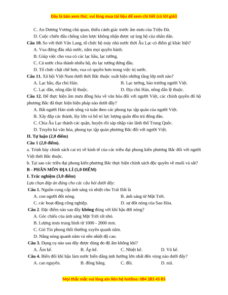 Câu 12. Để thực hiện âm mưu đồng hóa về văn hóa đối với người Việt, các chính quyền đô hộ
