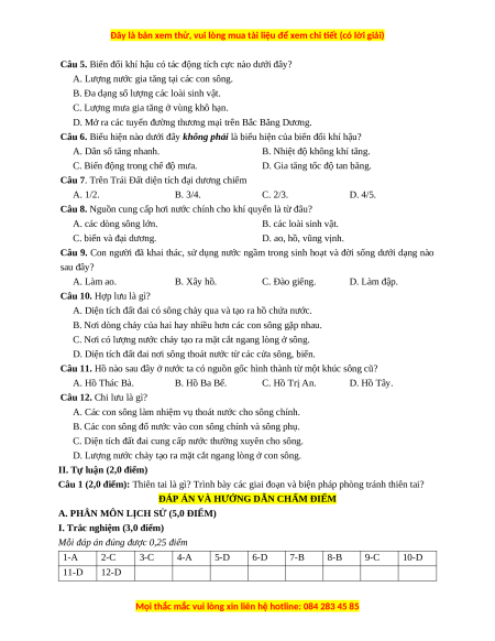 Câu 1 (2,0 điểm): Thiên tai là gì? Trình bày các giai đoạn và biện pháp phòng tránh thiên tai?