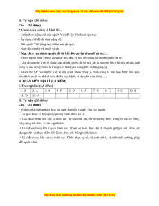 ĐÁP ÁN VÀ HƯỚNG DẪN CHẤM ĐIỂM