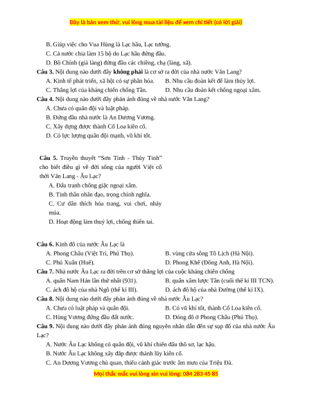 Câu 4. Nội dung nào dưới đây phản ánh đúng về nhà nước Văn Lang?