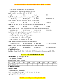 Mỗi đáp án đúng được 0,25 điểm 1-A 2-C 3-C 4-A 5-D 6-D 7-B 8-B 9-C 10-D 11-D 12-D