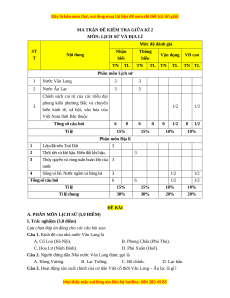 MÔN: LỊCH SỬ VÀ ĐỊA LÍ Mức độ đánh giá ST Nhận Thông Nội dung Vận dụng VD cao T biết hiểu TN TL TN TL TN TL TN TL Phân môn Lịch sử 1 Nước Văn Lang 3 3 2 Nước Âu Lạc 3 3