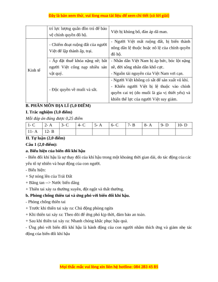 B. PHÂN MÔN ĐỊA LÍ (5,0 ĐIỂM)
