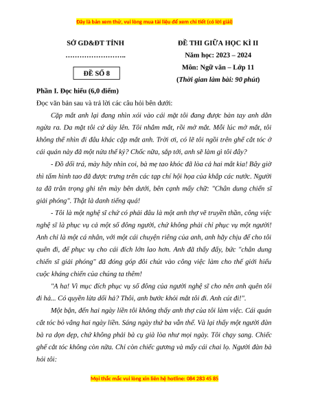 Môn: Ngữ văn – Lớp 11 ĐỀ SỐ 8