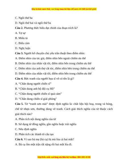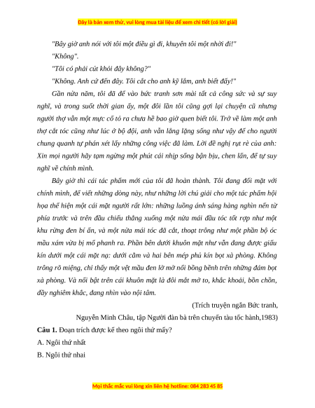 Câu 1. Đoạn trích được kể theo ngôi thứ mấy? A. Ngôi thứ nhất B. Ngôi thứ nhai