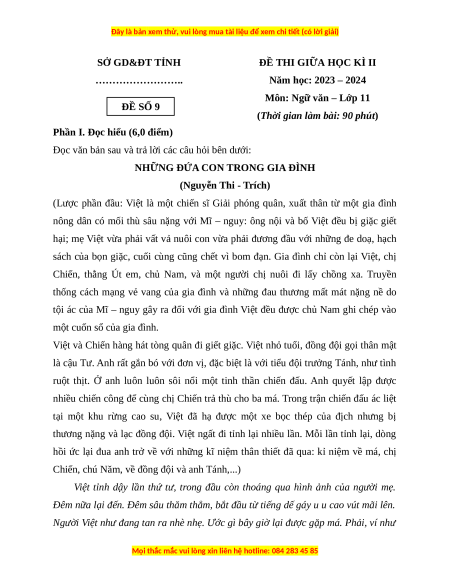 Môn: Ngữ văn – Lớp 11 ĐỀ SỐ 9
