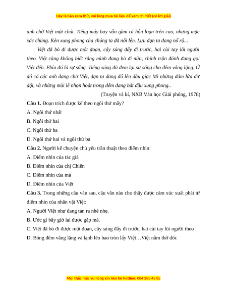 Câu 1. Đoạn trích được kể theo ngôi thứ mấy? A. Ngôi thứ nhất B. Ngôi thứ hai C. Ngôi thứ ba