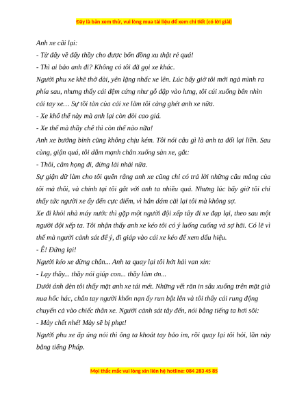 chuyển cả vào chiếc thân xe. Người cảnh sát tây đến, nói bằng tiếng ta hơi sõi: