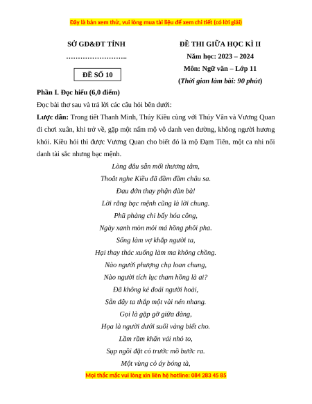 Môn: Ngữ văn – Lớp 11 ĐỀ SỐ 10