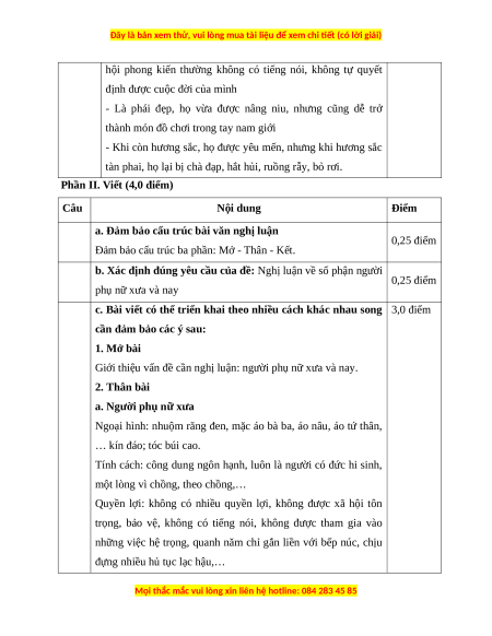 Từ đoạn trích ở phần đọc hiểu, em hãy viết bài văn nghị luận về người phụ nữ trong xã hội xưa và nay. HƯỚNG DẪN CHẤM