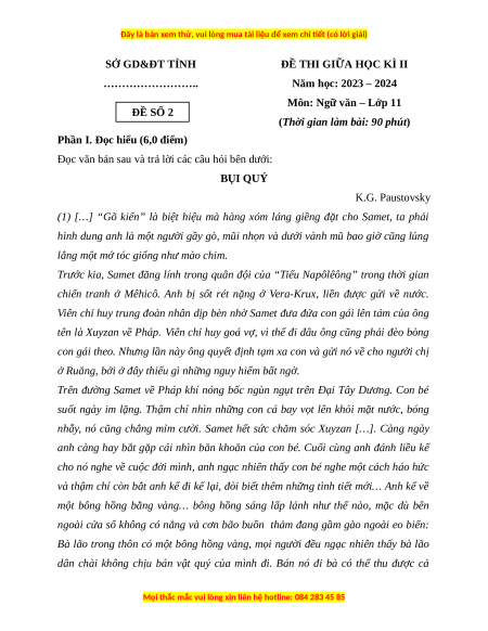 Môn: Ngữ văn – Lớp 11 ĐỀ SỐ 2