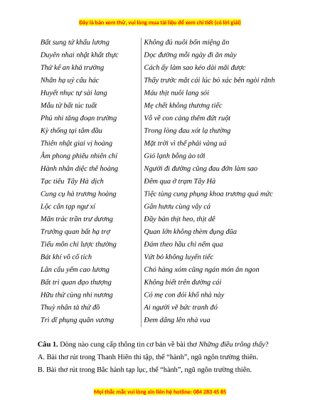 Câu 1. Dòng nào cung cấp thông tin cơ bản về bài thơ Những điều trông thấy?
