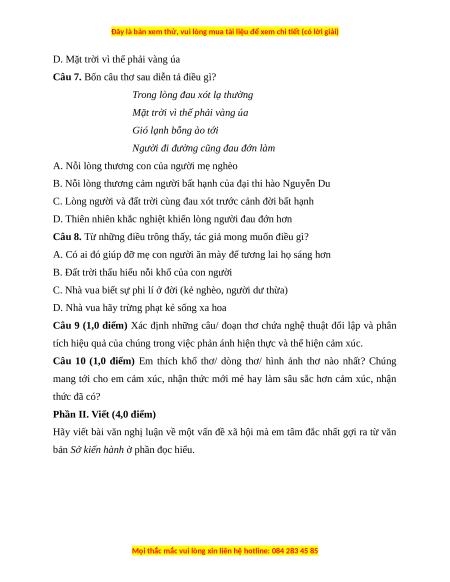 Câu 9 (1,0 điểm) Xác định những câu/ đoạn thơ chứa nghệ thuật đối lập và phân