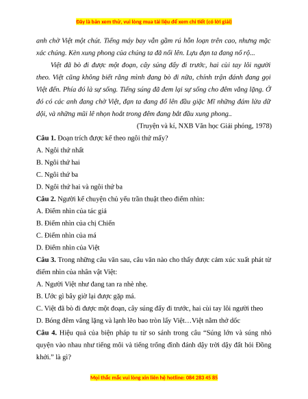 Câu 1. Đoạn trích được kể theo ngôi thứ mấy? A. Ngôi thứ nhất B. Ngôi thứ hai C. Ngôi thứ ba