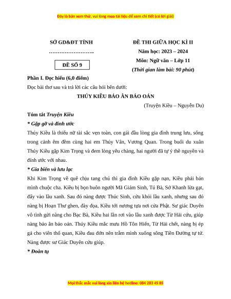 Môn: Ngữ văn – Lớp 11 ĐỀ SỐ 9