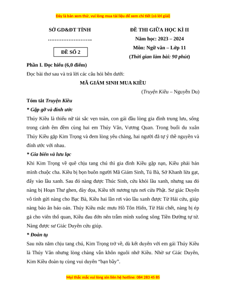 Đề thi giữa kì 2 Ngữ văn 11 Kết nối tri thức (Đề 2)