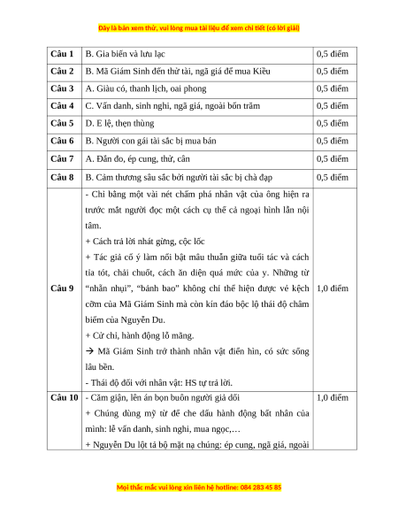 Câu 9 (1,0 điểm) Phân tích nghệ thuật khắc họa nhân vật Mã Giám Sinh của