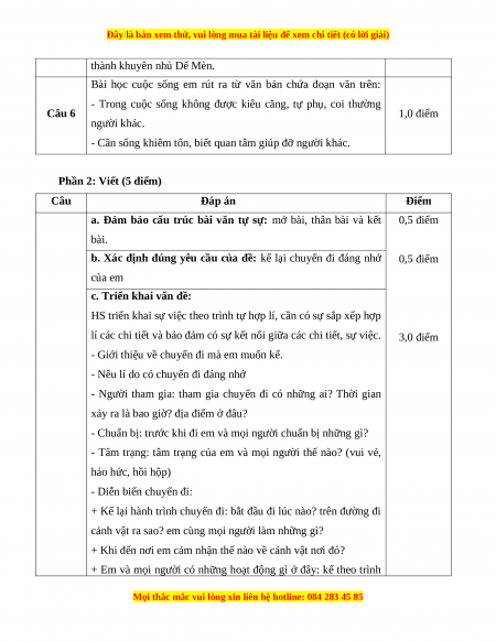Phần 2: Viết (5 điểm) Câu Đáp án Điểm