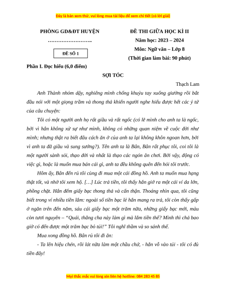 Phần I. Đọc hiểu (6,0 điểm) SỢI TÓC Thạch Lam