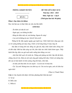 Môn: Ngữ văn – Lớp 8 ĐỀ SỐ 2