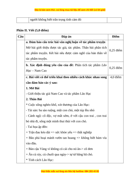 b. Xác định đúng yêu cầu của đề: Phân tích tác phẩm Lão 0,25 điểm Hạc – Nam Cao