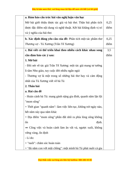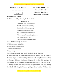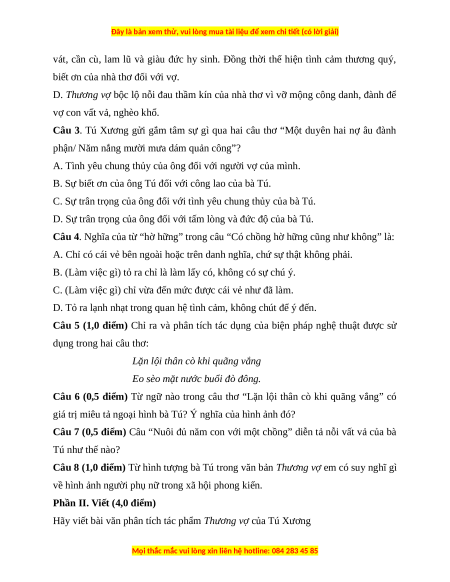 Câu 8 (1,0 điểm) Từ hình tượng bà Tú trong văn bản Thương vợ em có suy nghĩ gì