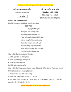 A. Thất ngôn bát cú đường luật 0,5 điểm Câu 2 D. Cả A, B, C 0,5 điểm