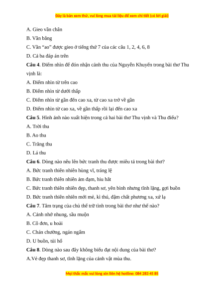 D. Điểm nhìn từ cao xa, về gần thấp rồi lại đến cao xa 0,5 điểm Câu 5 A. Trời thu 0,5 điểm