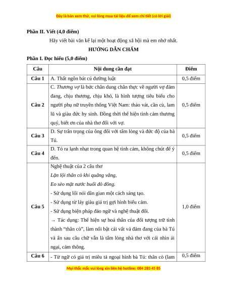 Câu 8 (1,0 điểm) Từ hình tượng bà Tú trong văn bản Thương vợ em có suy nghĩ gì