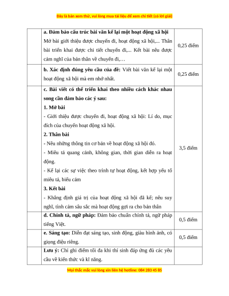 Hãy viết bài văn kể lại một hoạt động xã hội mà em nhớ nhất. HƯỚNG DẪN CHẤM