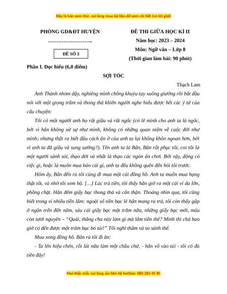 Phần I. Đọc hiểu (6,0 điểm) SỢI TÓC Thạch Lam
