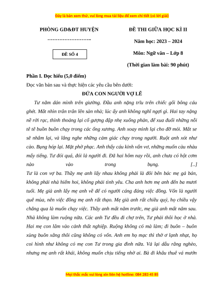 Đề thi giữa kì 2 Ngữ văn 8 Kết nối tri thức (Đề 4)