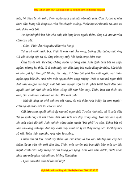 ai còn giữ lại làm gì? Nhưng lúc này.. Tư đưa bát phở lên mũi ngửi, mùi thơm