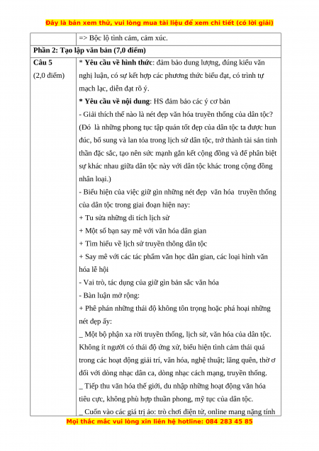 Phần 2: Tạo lập văn bản (7,0 điểm) Câu 5