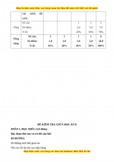 vận mệnh đất nước. Số câu: 1 1 2 Tổng Số điểm: 2,0 5,0 7,0 Tỉ lệ: 20% 50% 70% Số câu: 2 2 1 1 6 Tổng Số điểm: 1,0 2,0 2,0 5,0 10,0 cộng Tỉ lệ: 10% 20% 20% 50% 100%