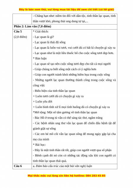 Phần 2: Làm văn (7,0 điểm) Câu 5 * Giải thích: (2,0 điểm) - Lạc quan là gì?