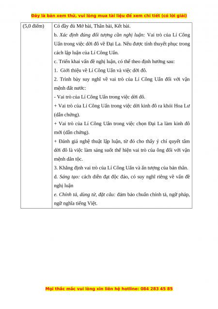 Câu 2 (5,0 điểm). Dựa vào văn bản Chiếu dời đô, hãy trình bày suy nghĩ về vai trò