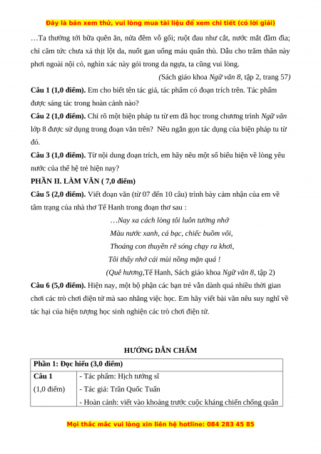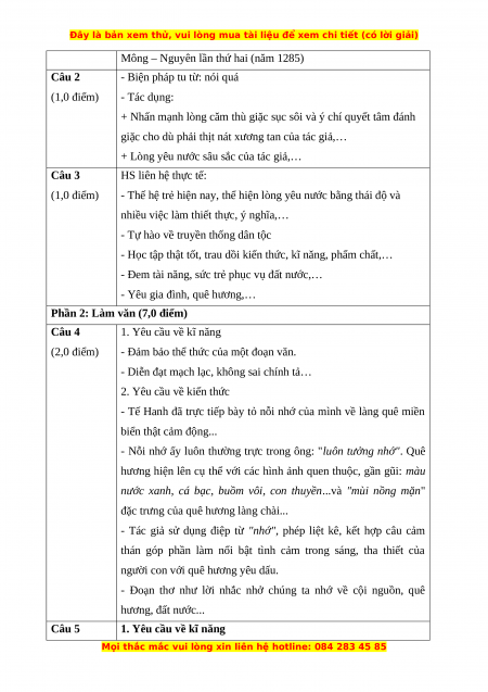 + Lòng yêu nước sâu sắc của tác giả,… Câu 3 HS liên hệ thực tế: (1,0 điểm)