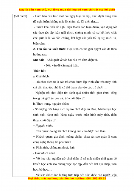tác hại của hiện tượng học sinh nghiện các trò chơi điện tử. HƯỚNG DẪN CHẤM