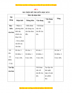 MA TRẬN ĐỀ THI GIỮA HỌC KÌ II