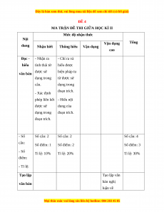 MA TRẬN ĐỀ THI GIỮA HỌC KÌ II